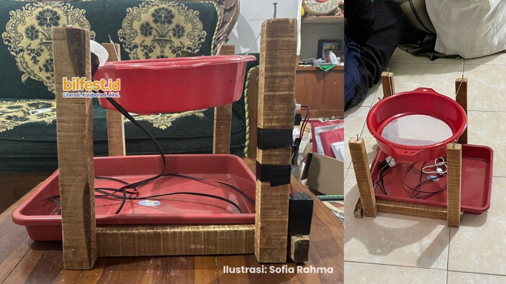 Alat ini dirancang untuk mempermudah dan mempercepat proses pengayakan bahan baku pangan, seperti tepung, kopi bubuk, atau rempah-rempah. Ayakan getar ini terbuat dari bahan-bahan yang mudah didapat, seperti saringan plastik, dilengkapi dengan kerangka dari kayu yang kokoh. Keunggulan utamanya adalah adanya motor penggerak kecil yang menghasilkan getaran, yang dioperasikan dengan tombol on/off. Penggunaan alat ini sangat praktis, efisien, dan bisa dipindah-pindahkan (portabel), sesuai dengan kebutuhan UMKM.