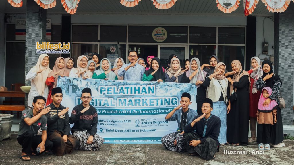Mazidaturrofi’ah sebagai ketua koordinator Kuliah Kerja Nyata (KKN) MANDIRI Institut Agama Islam Nahdlatul Ulama (IAINU) Desa Adikarso menyelesaikan satu demi satu program kerjanya. Salah satunya adalam pendampingan terhadap Usaha Mikro, Kecil dan Menengah (UMKM) lokal Desa Adikarso, yaitu dengan mengadakan pelatihan “Digital Marketing” mengusung tema “Menuju Produk Lokal Go Internasional” pada Sabtu, 30 Agustus 2025 di Aula Balai Desa Adikarso Kecamatan Kebumen Kabupaten Kebumen.