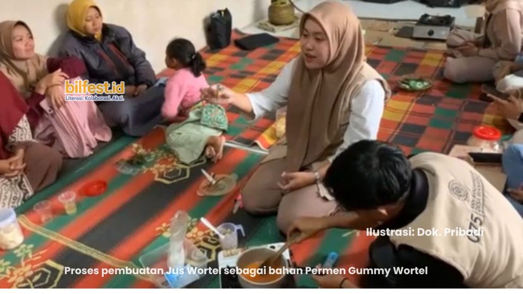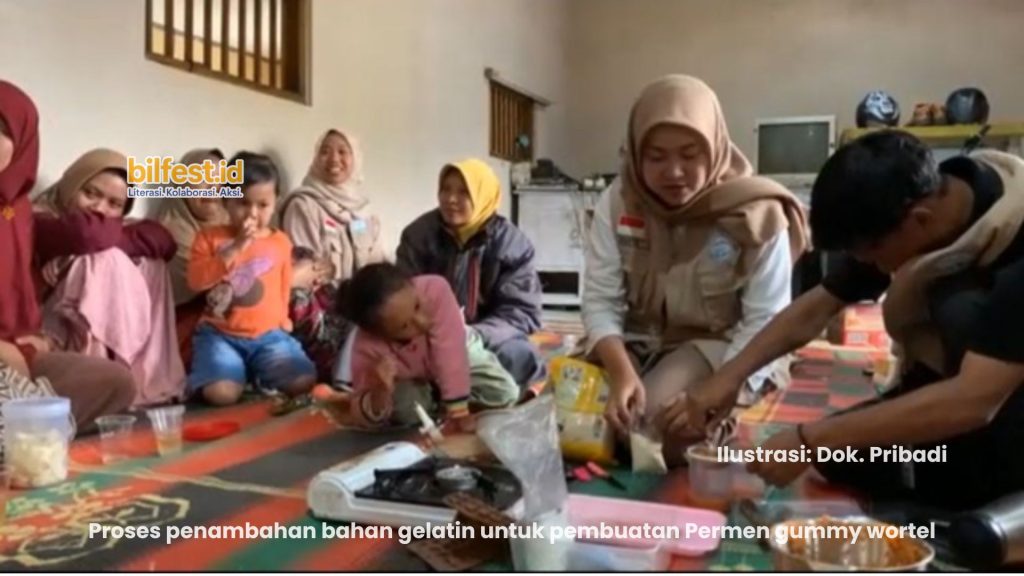 Banjarnegara – Mahasiswa Kelompok Kuliah Kerja Nyata (KKN) 075 Universitas Muhammadiyah Purwokerto (UMP) menghadirkan inovasi olahan pangan lokal berupa Permen Gummy Wortel di Desa Wanaraja, Kecamatan Wanayasa, Kabupaten Banjarnegara. Program kerja ini merupakan wujud kreativitas mahasiswa dalam mengoptimalkan potensi hasil pertanian desa khususnya wortel, agar memiliki nilai lebih serta mampu menarik minat anak-anak untuk mengkonsumsi sayuran.