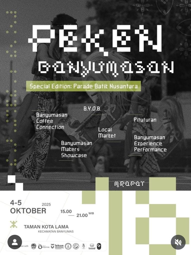 Banyumas bersiap menggelar sebuah acara budaya yang ditunggu-tunggu masyarakat, yaitu Peken Banyumasan 2025. Event ini akan berlangsung selama dua hari pada 4–5 Oktober 2025, bertempat di Taman Kota Lama, Kecamatan Banyumas, mulai pukul 15.00 hingga 21.00 WIB. Acara ini mengangkat tema Special Edition: Parade Batik Nusantara yang diharapkan mampu menjadi ruang apresiasi budaya, kreativitas, sekaligus memperkuat identitas Banyumas di kancah nasional.