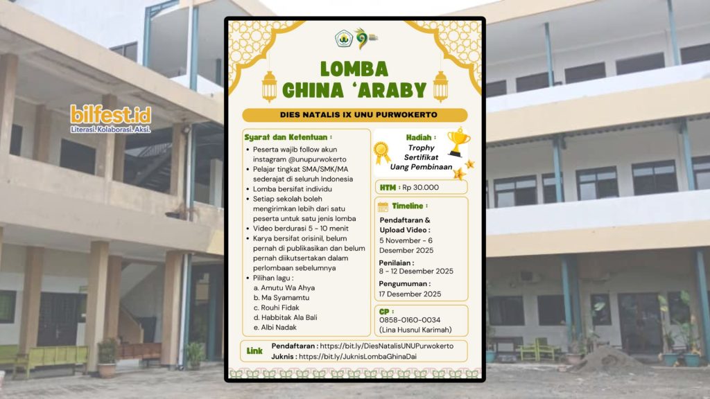 Kegiatan ini terbuka bagi siapa pun yang ingin menunjukkan kemampuan vokal sekaligus mengasah kepekaan estetika terhadap bahasa Arab. Dengan semangat kebersamaan dan kompetisi sehat, UNU Purwokerto mengajak seluruh pelajar di Indonesia untuk bergabung dan berpartisipasi dalam perayaan penuh makna ini.